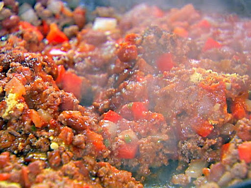 Brown the meat and the onion in a large nonstick skillet over medium-high heat for 5 minutes, breaking up the meat into crumbles as it cooks. Pour the drippings out of the pan and discard. Add the garlic, jalapeno, and red pepper and cook 5 minutes more, stirring occasionally. Stir in the rest of the ingredients, reduce heat to low, and simmer for 5 minutes more. Place a half-cup scoop of the mixture onto each bun and serve.