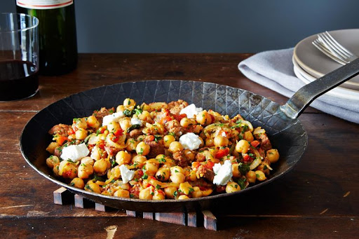 Chickpeas, Chorizo and Chevre Skillet Casserole