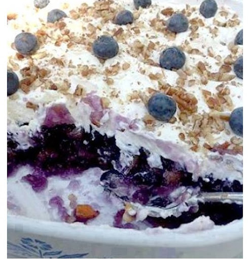 2 – Cover with plastic wrap and set aside in refrigerator until the above Blueberry Jell-O mixture is set. The topping can also be made right before you are ready to serve the salad.