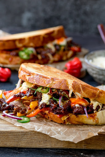 KOREAN STEAK SANDWICH WITH JALAPENOS AND GARLIC MAYO 1 Picture