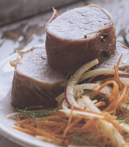 PROSCIUTTO ROAST PORK TENDERLOIN WITH FENNEL CARROT SLAW