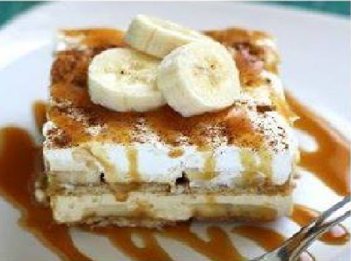 Then repeat the layers- graham crackers, caramel, bananas and ending with the cream.