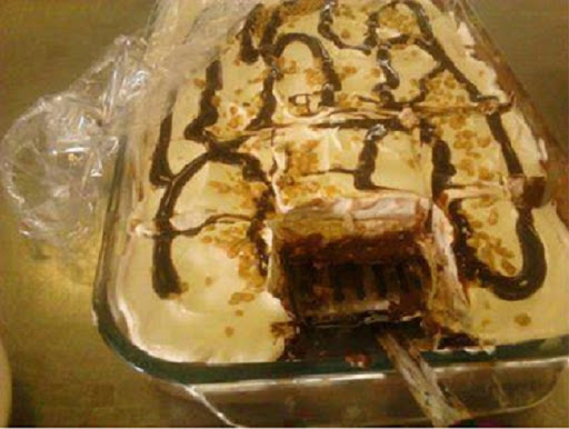 1 container of Cool Whip….topped with chocolate syrup and sprinkled some Heath Bits.