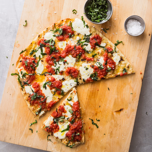 The dough must sit for at least 24 hours before shaping. We prefer the high protein content of King Arthur bread flour for this recipe, though other bread flours are acceptable. For best results, weigh your ingredients. It’s important to use ice water in the dough to prevent it from overheating in the food processor. Grilled pizza cooks quickly, so it’s critical to have all of your ingredients and tools ready ahead of time. We recommend pargrilling, topping, and grilling in quick succession and serving the pizzas one at a time, rather than all at once.