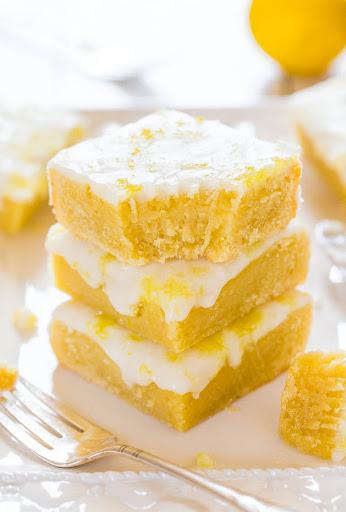 Make glaze with powdered sugar and lemon juice until pourable consistency. Pour over warm Lemonies. Top with Lemon Zest.
