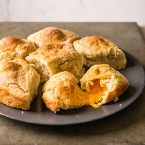 Look for sharp or mild yellow cheddar cheese; extra-sharp cheddar doesn’t melt as smoothly. The biscuit dough will be very wet and soft. Keep your hands well floured and don’t be afraid to sprinkle extra flour on the biscuits to keep them from sticking. To keep the biscuits tender and prevent overbrowning, use a light-colored cake pan; our favorite is the Nordic Ware Naturals Nonstick 9-Inch Round Cake Pan.
