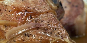 4. Remove chops from the pan, drain off excess fat, return pan to heat and add minced shallots and allow them to soften. Then, add vermouth, scraping up all the browny bits. Let it simmer for a minute or two, reducing, then serve drizzled over the pork chops.