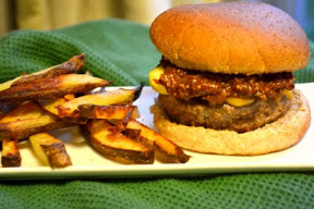 Grill burgers on medium-high to 60 degrees, about 4-5 minutes on each side. Serve on slices of grilles French bread and top with Tomato Bacon Relish.