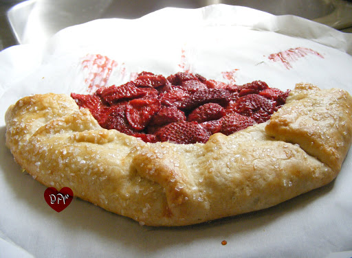 Rustic, open-faced pie with fresh, juicy strawberries shining in the center of a buttery, homemade crust! Serve with whipped cream or vanilla ice cream.