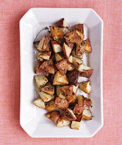 Combine oil and seasonings in a bowl. Add potatoes and toss to coat with oil mixture. Place in a single layer on prepared baking sheet and roast 20 minutes. Stir, then roast an additional 15 minutes.