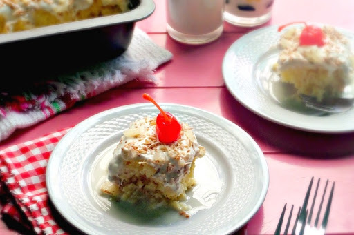 A traditional Mexican cake scented with the flavors of a pina colada cocktail - pineapple, coconut and rum.