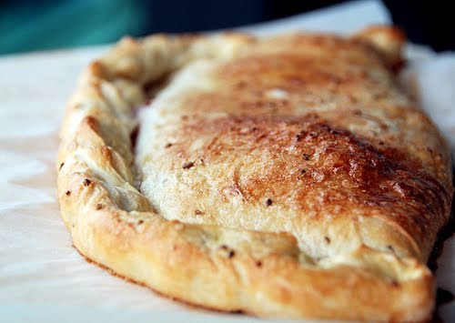 Combine yeast, sugar, 1 cup of the flour, and salt in a large bowl. Add the warm water and mix. Stir in remaining flour slowly until dough is soft but not sticky. Knead until smooth. Let the dough rest for at least 30 minutes before making the calzone.