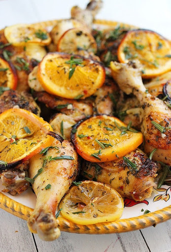 You can also switch up the seasonings to a spicy mix and toss in lemons and limes instead of oranges. Swap cilantro for the rosemary and thyme. Serve it over rice.