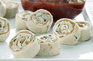 ROLL tortillas up tightly; wrap tightly in plastic wrap. Refrigerate at least 30 min. Cut each tortilla into 10 (1/2-inch thick) slices. Serve with TACO BELL® HOME ORIGINALS® Thick 'N Chunky Salsa.