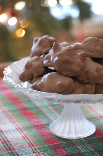 Melt caramels and water in microwave until you can stir easily; stir until smooth. Mix in pecans and cereal. Cover cookie sheets with wax paper. Drop candy by spoonfuls onto cookie sheets. Put cookie sheets in refrigerator until candy hardens (about 30 minutes). Melt chocolate bark in microwave. Using a fork, dip candy into chocolate bark, turning to coat all sides. Place candy on sheets of wax paper on the counter to harden.