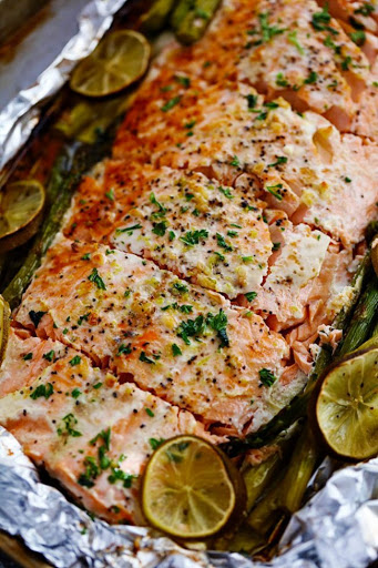 BUTTERY GARLIC LIME SALMON WITH ASPARAGUS IN FOIL