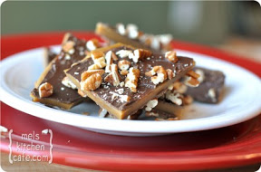 Pour the toffee onto the prepared pan and spread quickly into a thin even layer with an offset spatula. Allow the mixture to cool completely to room temperature. If needed, blot the buttercrunch with a paper towel to remove any droplets of butter.