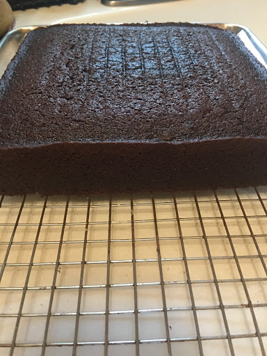 Pour your batter into your desired parchment lined pans. Bake at 350 degrees until a toothpick comes out clean.