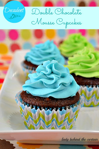 Spoon mousse into a large pipping bag and fill the hallowed out portion of the cupcake.