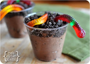 Divide the pudding mixture between six cups. Top with remaining crushed cookies. Gently press one or two gummy worms into the top of each pudding. Refrigerate until ready to serve.