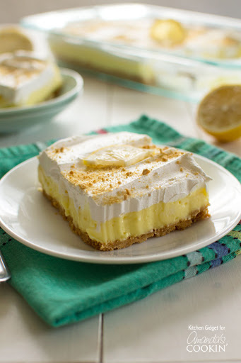 Add the whipped topping in an even layer and garnish with additional graham cracker crumbs and lemon slices. Refrigerate for at least 4 hours or until set.