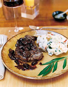 This dish — rosy steaks smothered in mushrooms fragrant with a drizzle of truffle oil — is positively swoon-worthy. What to drink: A good Merlot, such as the 1999 Wente Crane Ridge Reserve.