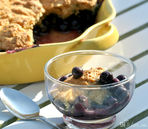 Pour the filling into a 9- or 10- inch, deep pie plate (it’s important not to bake the cobbler in too small or too shallow of a plate, or the hot blueberry filling will bubble all over the sides).