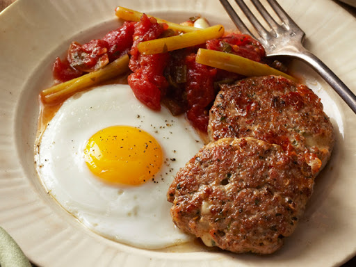 Heat the vegetable oil in a large nonstick skillet over medium heat. Add the sausage patties and cook until browned on both sides, 8 to 10 minutes. Transfer to a plate and tent with foil to keep warm. Crack the eggs into the hot skillet, season with salt and pepper and fry until just set, 2 to 3 minutes. Serve with the sausage patties.