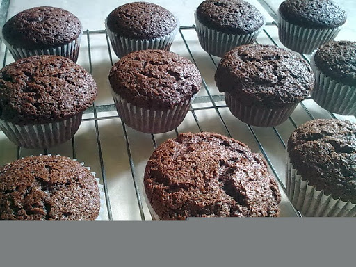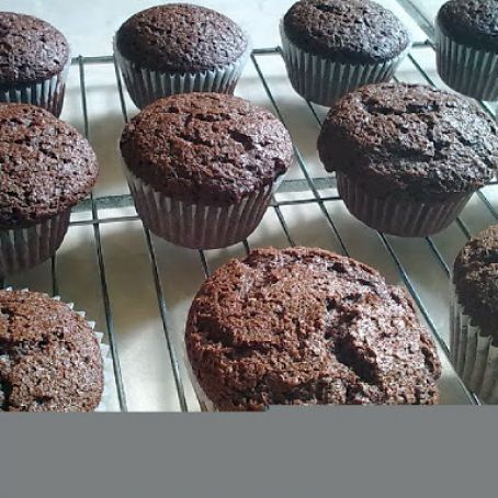 In a separate bowl, stir together flour, cocoa, baking soda, and cinnamon, if desired. Add to butter mixture, blending well. Stir in chocolate chips. Fill muffin cups 3/4 full with batter.