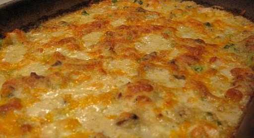 Cover dish with foil and bake for 25 minutes; remove foil and continue to bake until cheese is brown and bubbly.