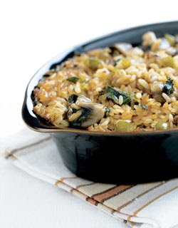 Cover with aluminum foil and bake for 1 hour until rice is cooked through.