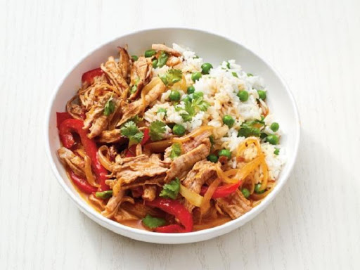 Return the pork to the slow cooker. Fluff the rice with a fork, stirring in the peas. Serve the pork with the rice; top with cilantro.