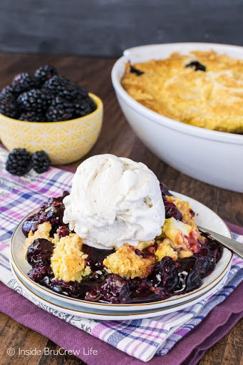 Bake for 40-50 minutes, or until the top is golden and the fruit is bubbling. My dish was a little deeper, so I baked it the full 50 minutes.