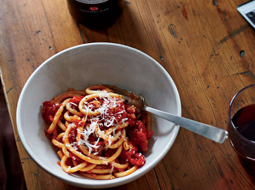 Bucatini all'Amatriciana with Parmigiano