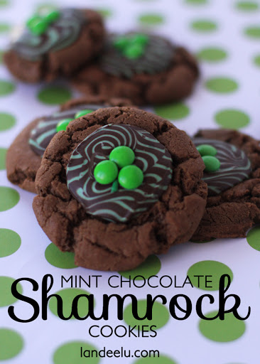After chocolate is pretty well melted, pick up cookie sheet and tap on counter a couple of times. It will make the chocolate spread out on the cookie. Go through bag of mini M&M's and select only the green ones to put on top of melted chocolate to form shamrock. You can also add a little stem by using a green sprinkle.