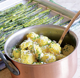 - 2-1/4 lb. small (2-inch) new potatoes, such as Yukon Gold or Yellow Finn, peeled and halved lengthwise (about 14 potatoes)