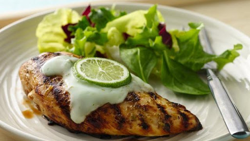 3 In small bowl, mix yogurt and lime peel. Serve chicken topped with yogurt mixture and lime slices.