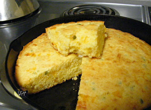 Moist, tender yellow cornbread loaded with cheese, corn, onion, and jalapenos.