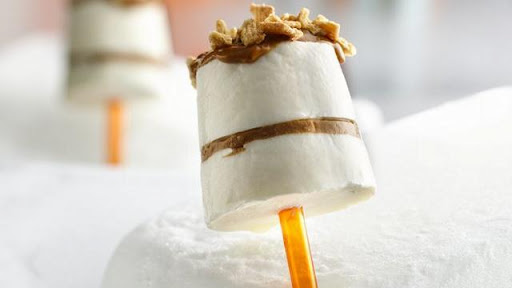 3 About 30 minutes before serving, remove reserved dulce de leche mixture from refrigerator; let stand at room temperature to soften. Remove pops from freezer and paper cups. Dip top of each pop in reserved dulce de leche mixture; dip in cereal.