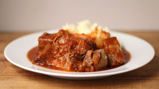 Cut the meat into serving sized-chunks (or you can shred it, if you prefer) and reheat in the sauce. Serve.