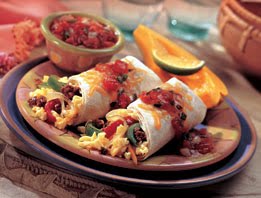 3. Place 1/2 cup egg mixture into tortilla; roll burrito-style.