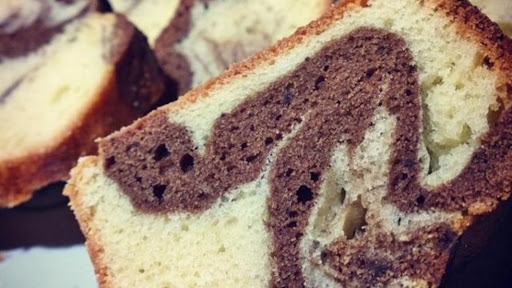 Layer the light and dark batters by large spoonfuls and then swirl slightly with a knife.