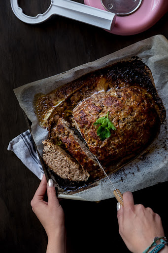 To form your meatloaf, first line an oven tray with baking paper then place the meatloaf mixture into the centre, then form into a loaf shape. Alternatively, grease a large bread pan and add the meatloaf.