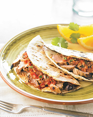 Cut tenderloins into thick slices. Top each tortilla with sliced pork; serve with Grilled Salsa Roja