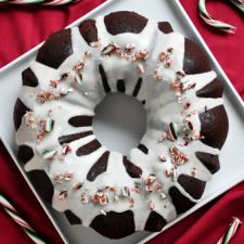 Carefully pour the batter over the fruit and bake for 33 to 36 minutes. To avoid spills, make sure to put the bundt pan on a baking sheet.