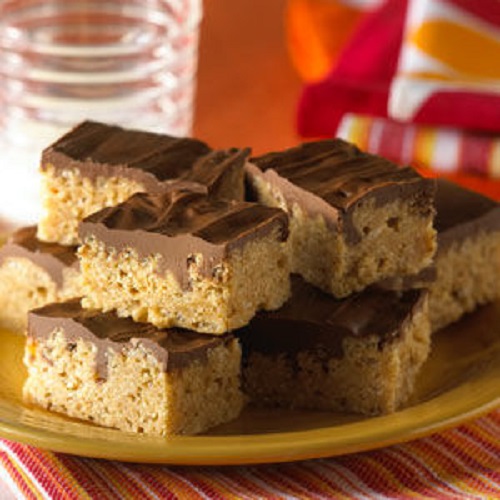 2. Melt chocolate and butterscotch chips together in 1-quart saucepan over low heat, stirring constantly. Spread evenly over cereal mixture. Let stand until firm. Cut into 2 x 1-inch bars when cool.