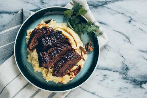 Slice the brisket on a bias and serve it with your favorite whipped veg (this recipe for Creamy Whipped Parsnips shown here) and drizzle with the reduced sauce.