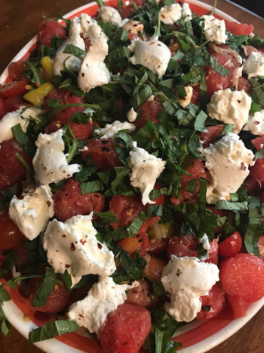 This is adapted from a David Burke recipe in People Magazine. I served this salad with crusty bread and the basil olive oil for dipping on a hot summer night. It was so good!