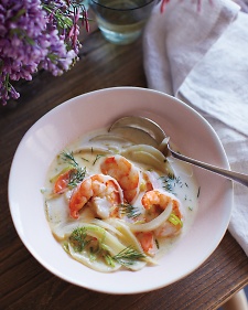 Stir in shrimp and cook until just cooked through, about 2 minutes. Season with salt, pepper, and a squeeze of lemon juice. Divide stew among 6 shallow bowls and garnish with fennel fronds.