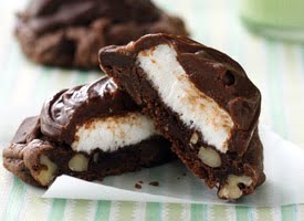 Indulge in chocolate-frosted cookies with a marshmallow center made easier with a cookie mix.